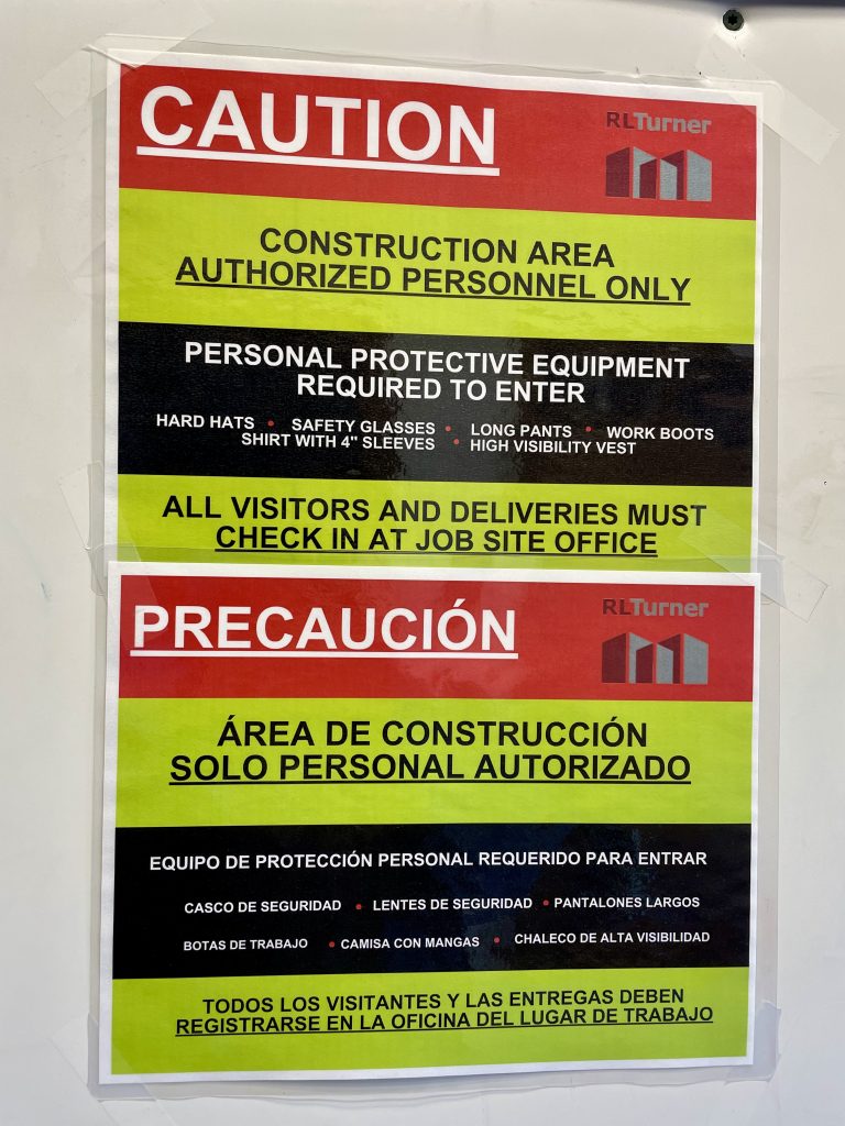 Sam Medlen has only worked here a few years. However, he saw that there was a potential disconnect in communication at our job sites. He created bilingual signs, in English and Spanish, listing our required PPE and directing all visitors to our job site trailer.